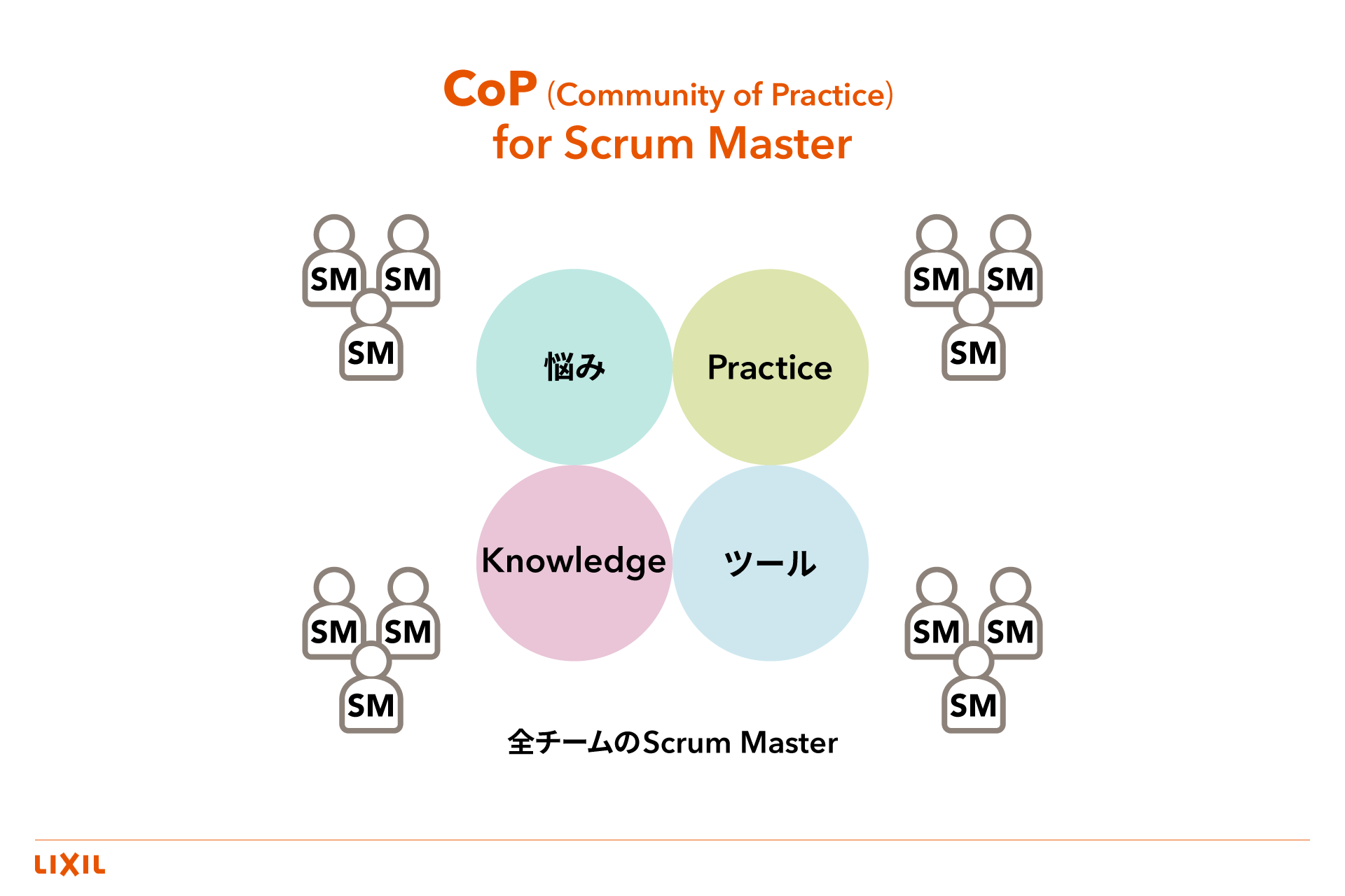 3つ目の要因として、スクラムチームの学びを共有し、課題を解決するための仕組みである、Community of Practice(CoP)の開催が挙げられる。