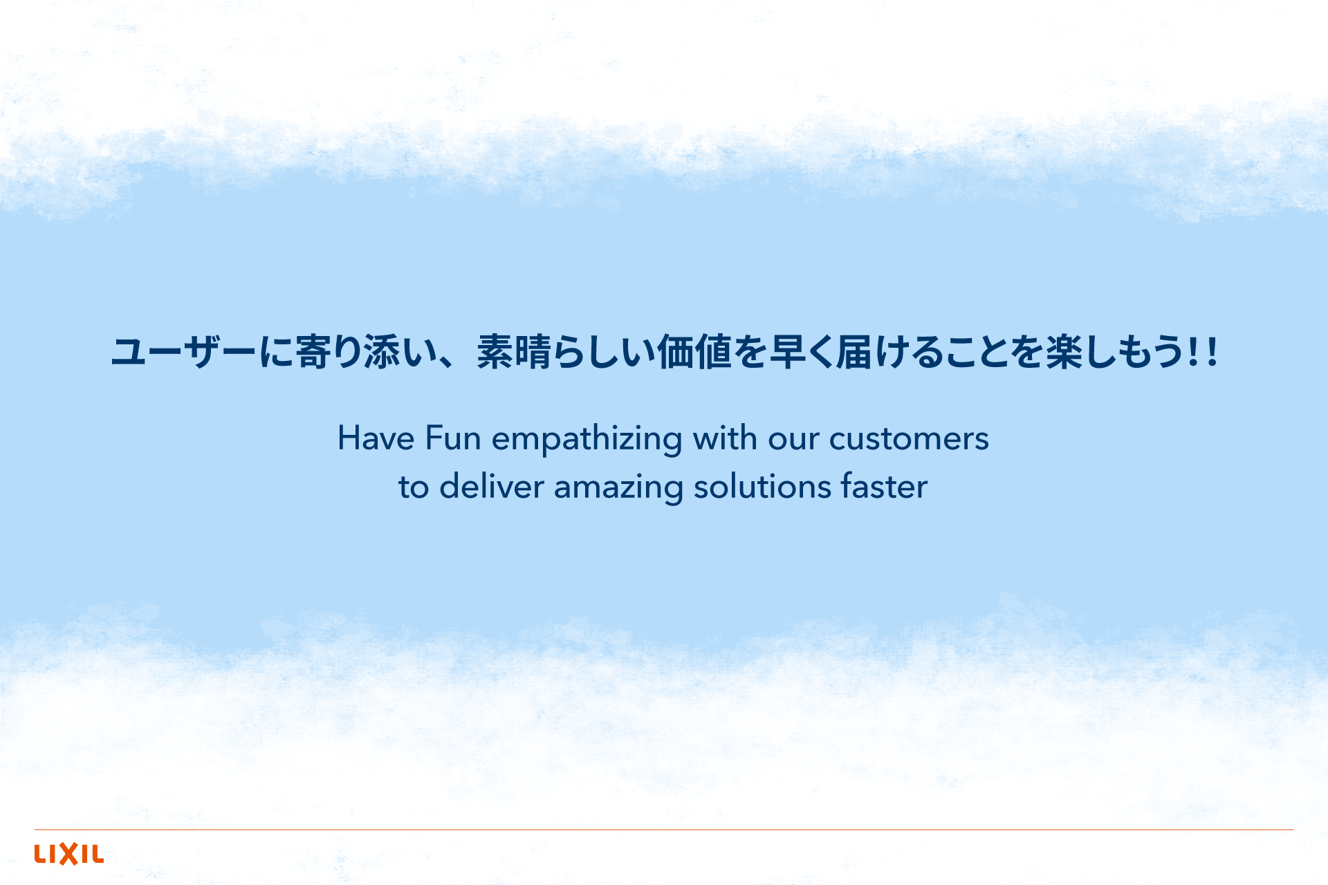 このビジョンには、「我々は、もっと顧客へフォーカスし、顧客の課題に共感するまで理解し、顧客が気づいていないような課題までも解決する。顧客がビックリするようなソリューションをもっと素早く提供していこう。そのことを我々自身楽しんでやっていきたい。」、そんな思いが込められている。