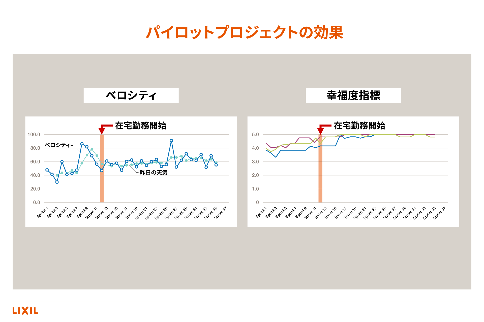 効果は数字にも表れた。プロジェクトを遂行する速度の数値は、明確に向上。さらにパイロットチームのハピネス(幸福度指標)も、継続して向上し続けた。スクラム開始からわずか3ヵ月で、リモートに移行せざるを得なかったにもかかわらず、だ。